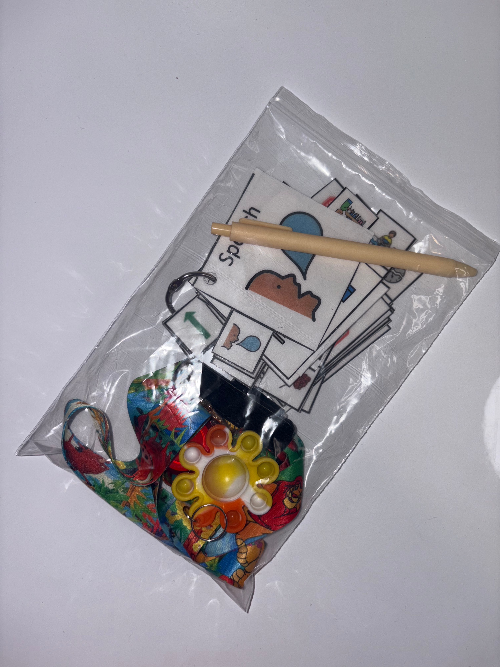 Support communication, focus, and data collection all in one with this all-in-one Multimodal Communication Lanyard! Designed for students of all ages, especially those with autism or sensory needs, this lanyard includes a built-in calming fidget tool to reduce anxiety and increase focus, plus a secure pen holder for quick note-taking or data tracking during sessions. Ideal for parents, speech-language pathologists, teachers, aides, and therapists who value both accessibility and function. Promote regulation, engagement, and ease with this classroom, home and clinic-ready tool.