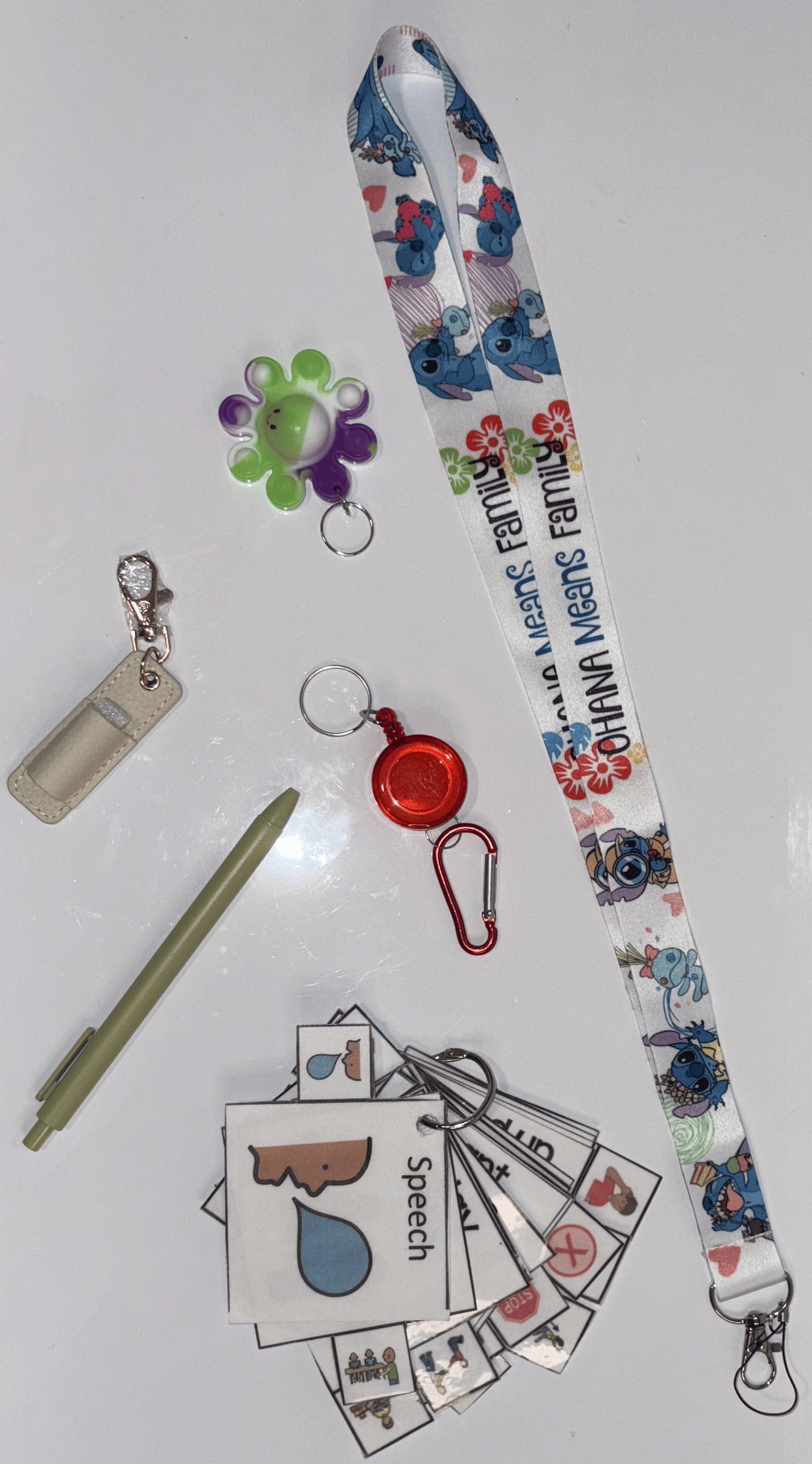 Lilo and Stitch Multimodal Communication Lanyard with Fidget and Pen (Ohana means family white) – Sensory Support for Teachers, Therapists and Students with Autism
