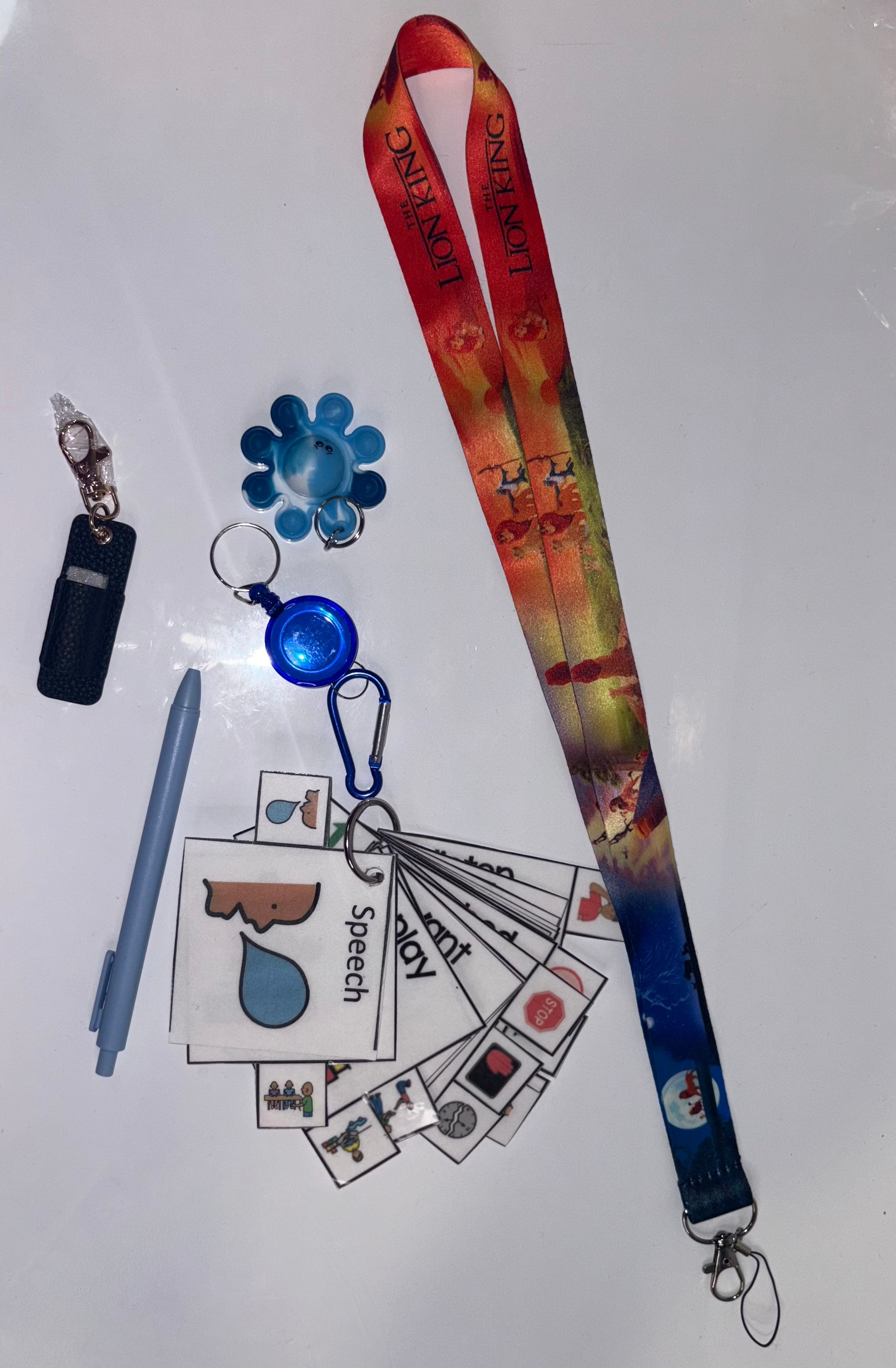 Lion King Themed Multimodal Communication Lanyard with Fidget & Pen – Sensory Support for Teachers, Therapists & Students with Autism